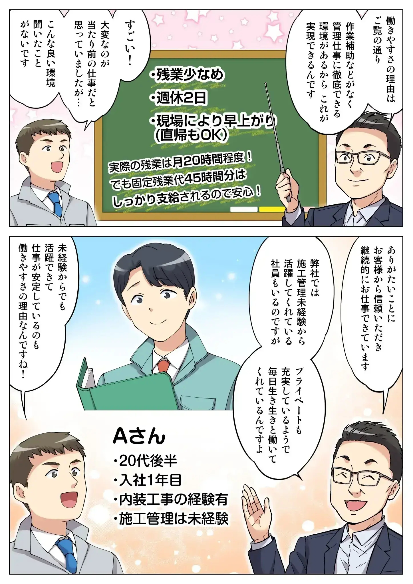 建設業界、しかも施工管理職では珍しく、完全週休2日制確立!ワークライフバランスを重視しました。
